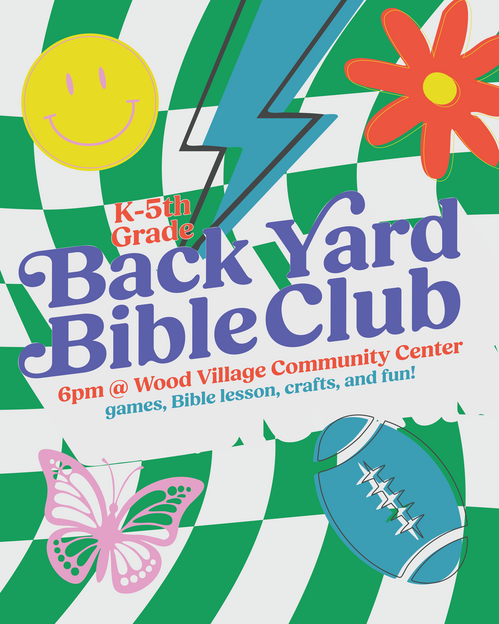 On March 25, our Backyard Bible Club is back!! Our Kids ministry (K-5th Grade) will be meeting at Wood Village once a month for Backyard Bible Club. The night will include a Bible lesson, craft, and games! It starts at 6 pm. If you would like to serve, contact Sara.